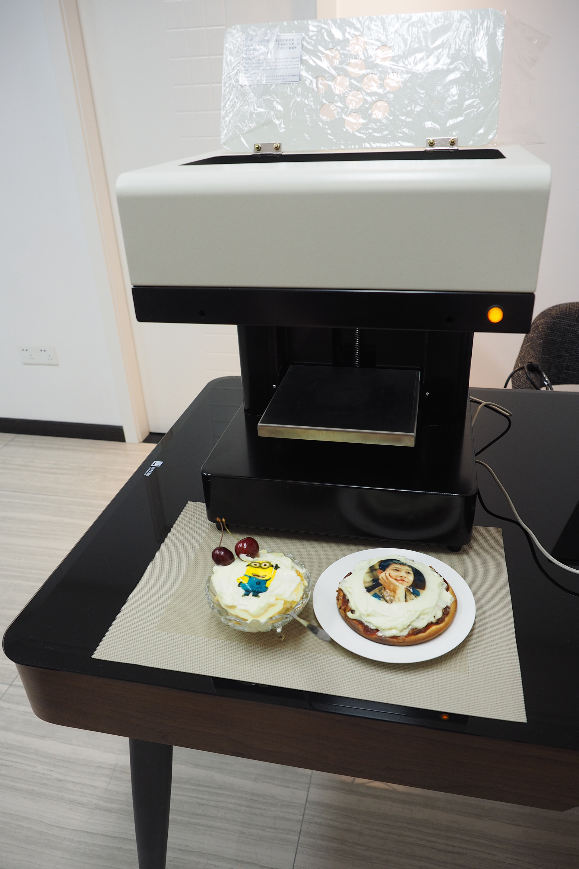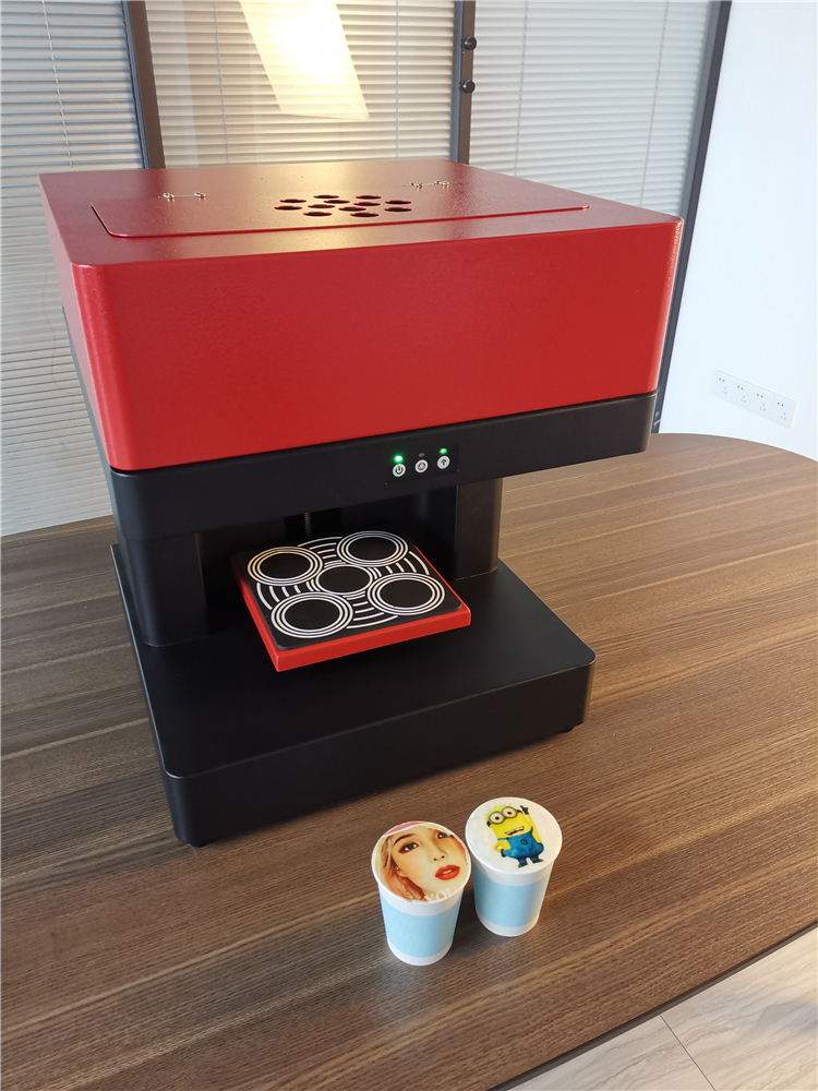 This automatic food printer can print on coffee, cake, bread, chocolate, and more.