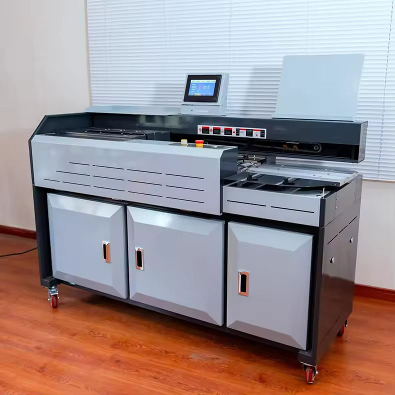 The Automatic Cover Feeding Glue Binding Machine is an essential tool for anyone looking to create professional-quality books. This machine makes book binding easy and efficient, allowing you to bind up to 430 books per hour. It is perfect for various post-press applications, making it a must-have for printing companies, schools, and more.