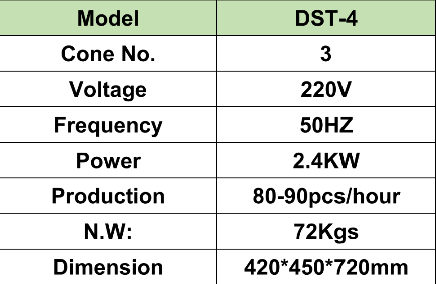 The machine works with edible materials such as sugar, flour, and other ingredients suitable for making edible cups and cones.