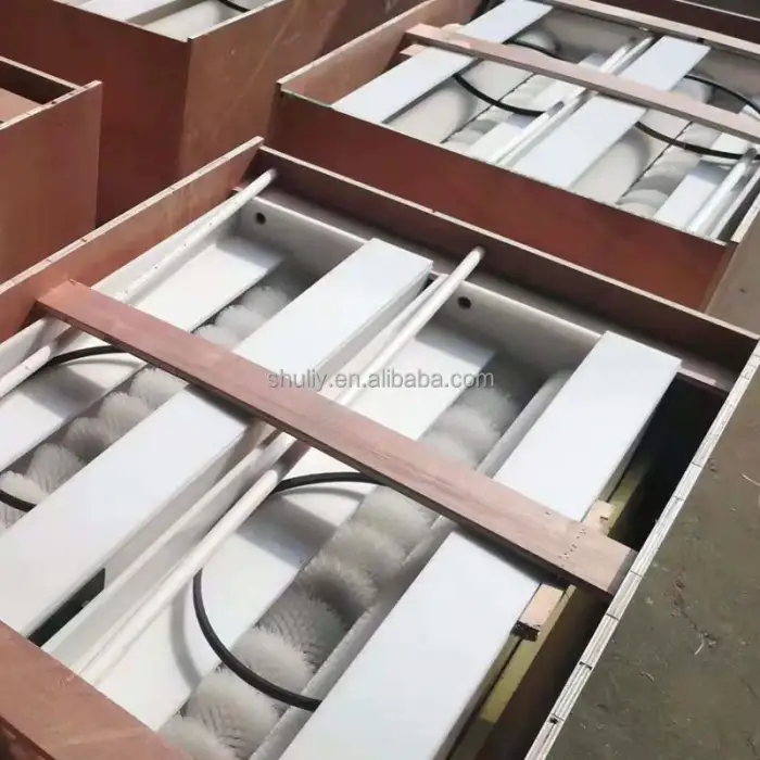 The egg washing machine is packaged in a wooden case for safe transportation.