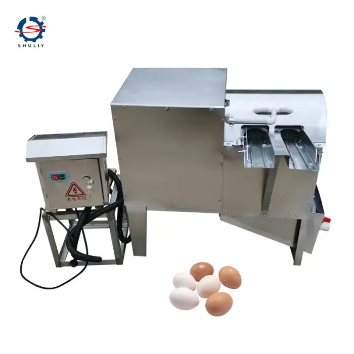 The machine helps maintain hygiene by effectively cleaning eggs, which is crucial in food production.