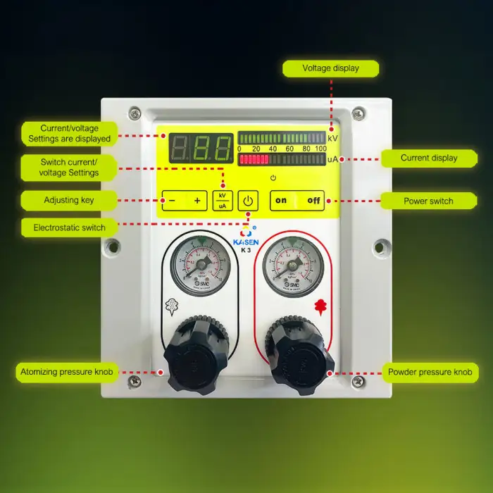While specific safety features are not detailed, it is important to follow standard safety practices when operating any powder coating equipment.