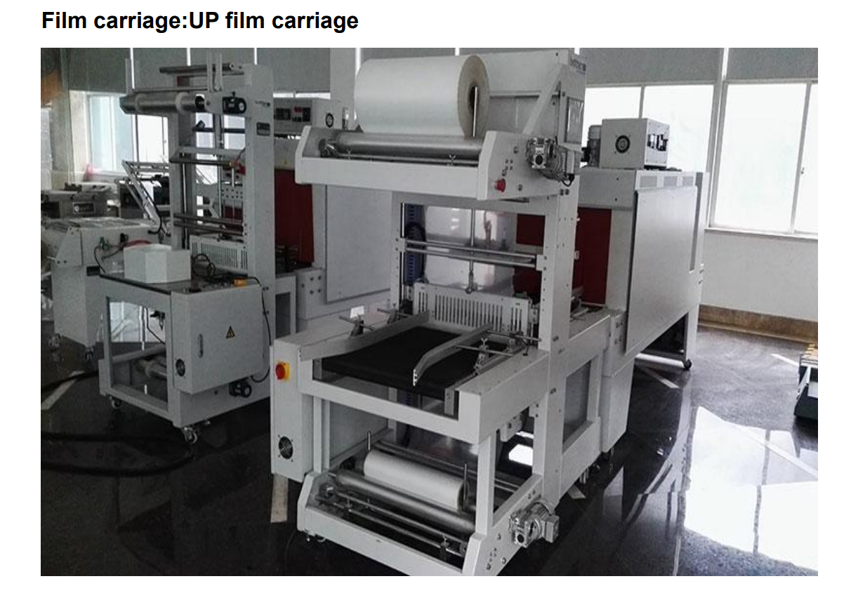 The machine is generally compatible with various types of shrink films, including PVC, POF, and PE, depending on the specific model and its settings.
