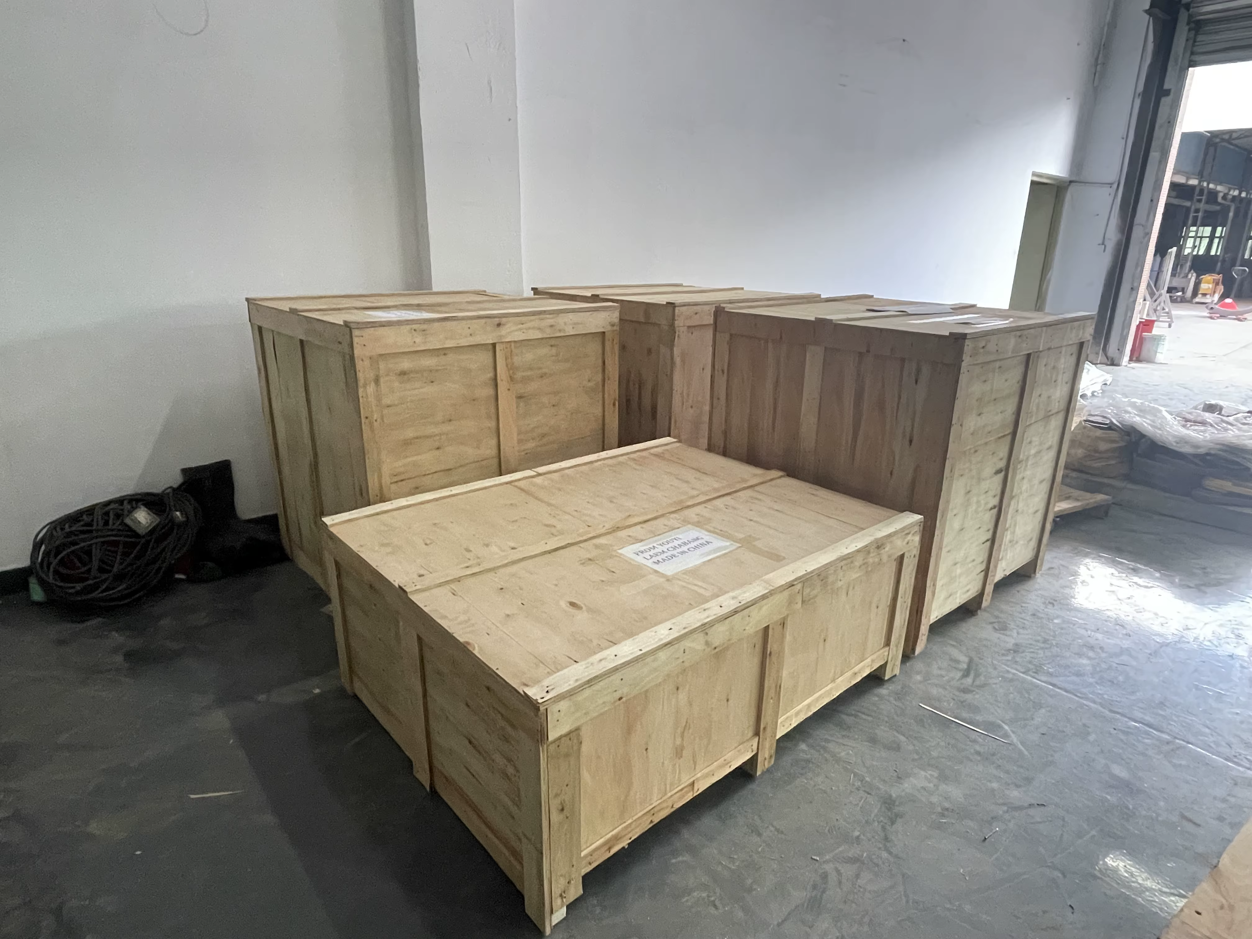 The decoiler has customizable dimensions, but the standard package size is 220 cm x 120 cm x 180 cm.