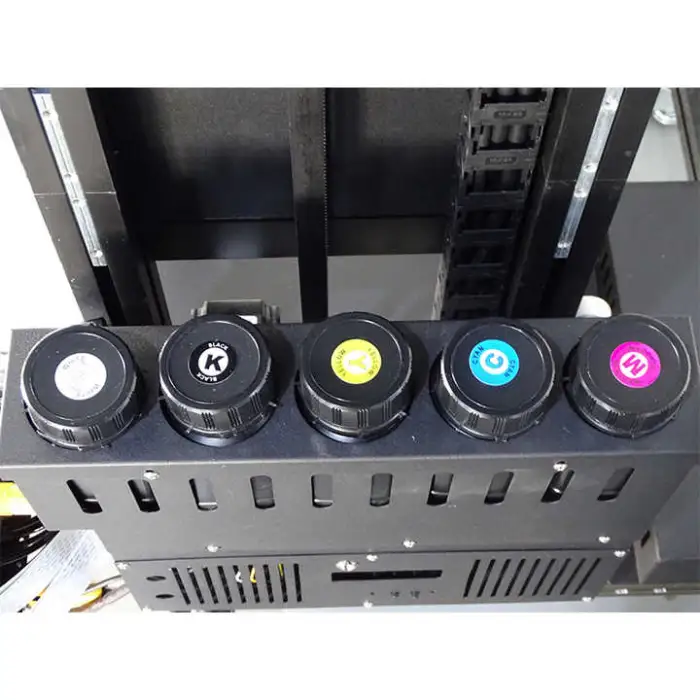 The printer uses EcoSolvent UV ink, which provides vibrant colors and is suitable for indoor and outdoor applications.