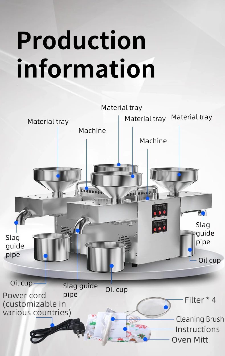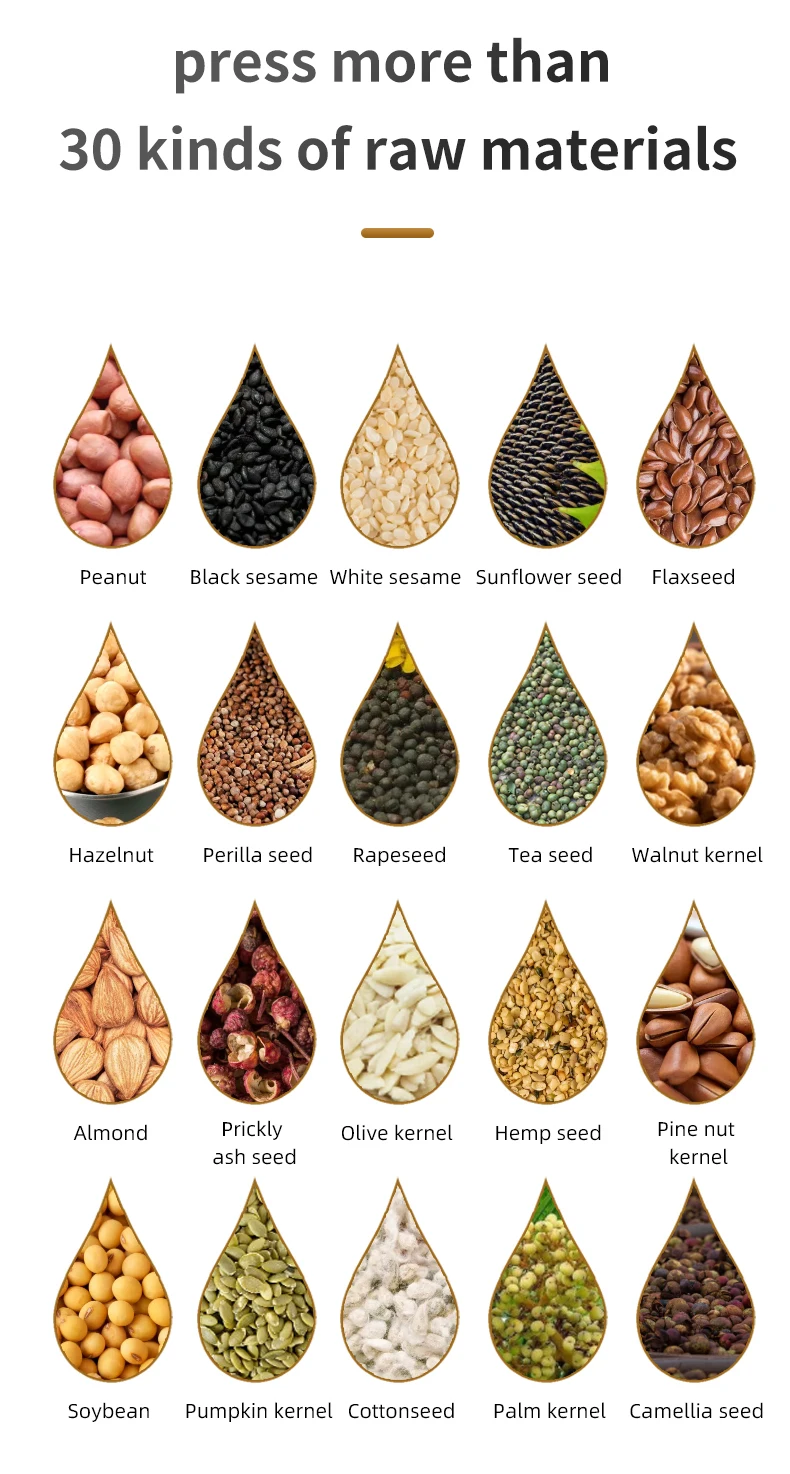 The B04 Automatic Oil Press Machine is designed to extract oil from various seeds, including sunflower, sesame, and flax seeds.