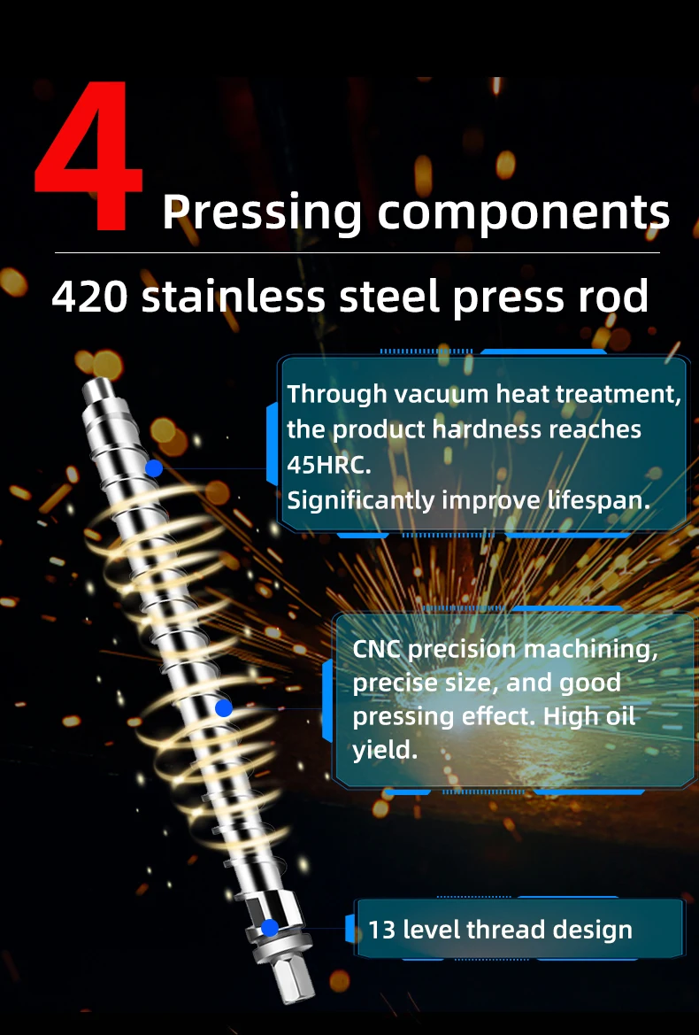 The B04 oil press machine is equipped with a powerful 2400W rated power and an 800W motor, providing efficient and fast oil extraction.