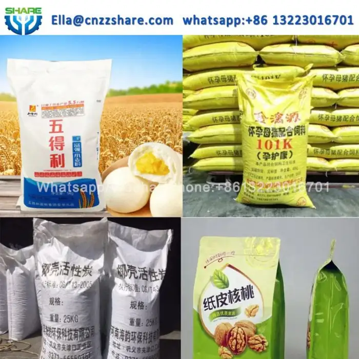 The Bean Grain Nut Food Weighing Detergent Powder Filling Pellet Packing Machine can pack various products, including grains (like rice and beans), nuts (such as almonds and walnuts), detergent powders, fertilizers, and charcoal.