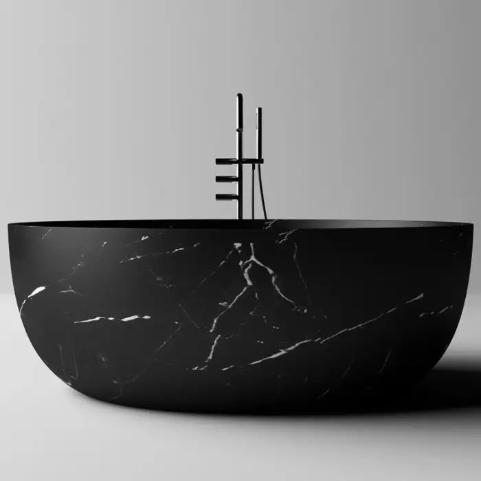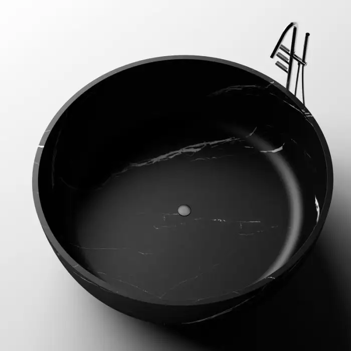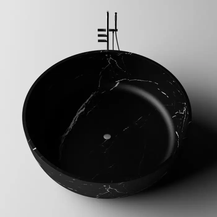 Black Carrara Color Two Person Round Resin Stone Bathtub Free Standing Bath Tub Solid Surface Acrylic Bath Tub