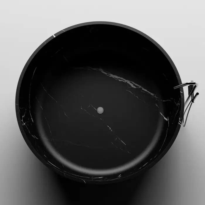 1. What are the dimensions of the Black Carrara Color Two Person Round Resin Stone Bathtub?
