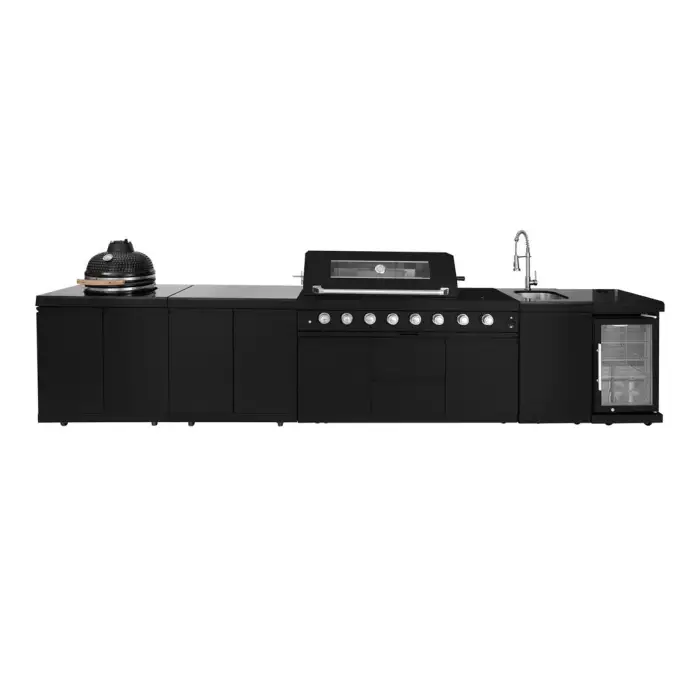 Black Stainless Steel Outdoor Kitchen with Kamado Egg Grill
