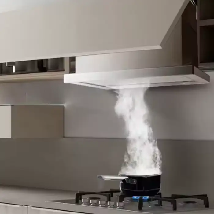 The slide-out telescopic feature allows the hood to extend when needed and retracts when not in use, providing convenience without taking up space.