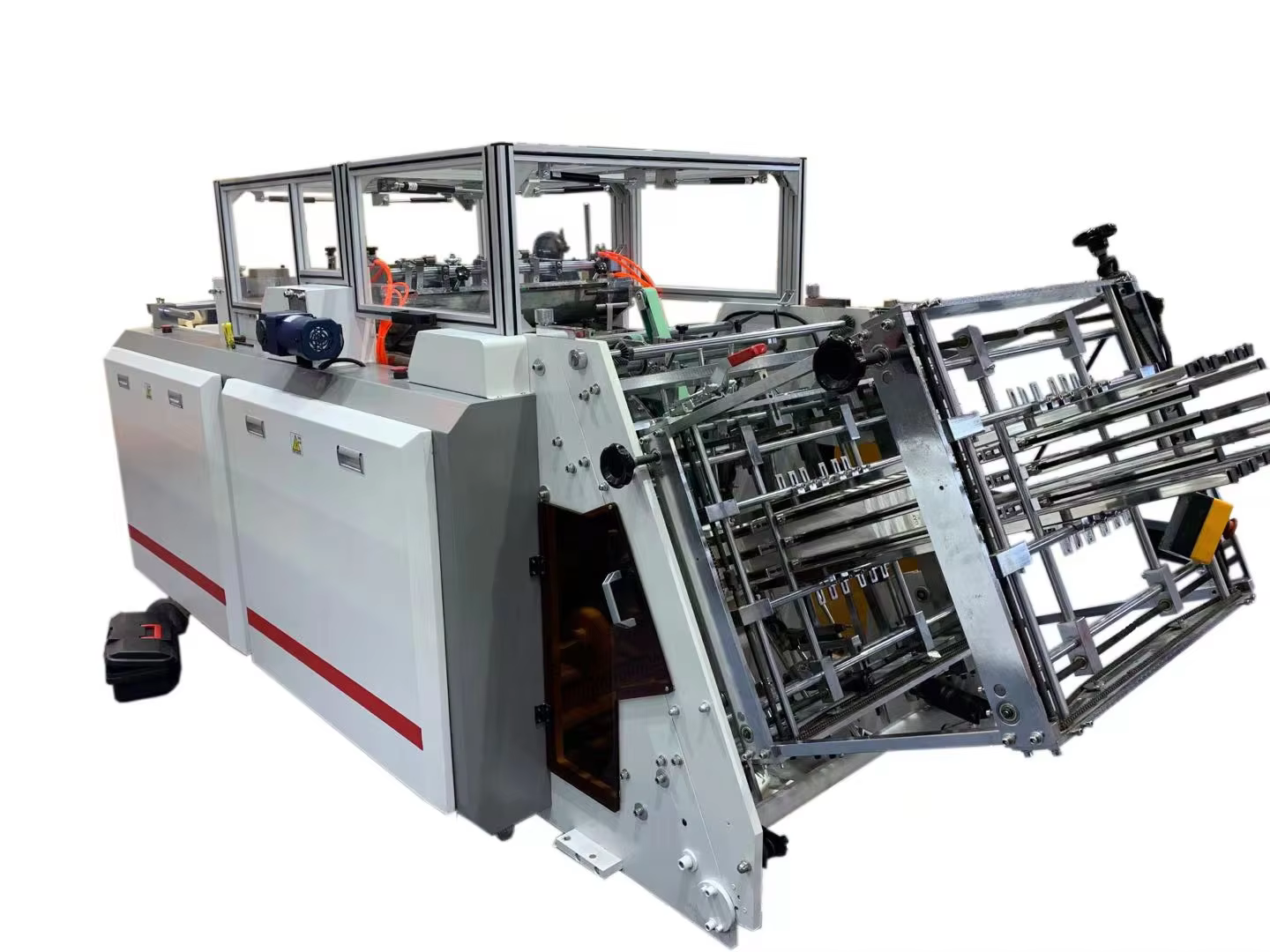 The Carton Box Making Machine has a production capacity of up to 300 pcs/min, depending on the model and specifications.