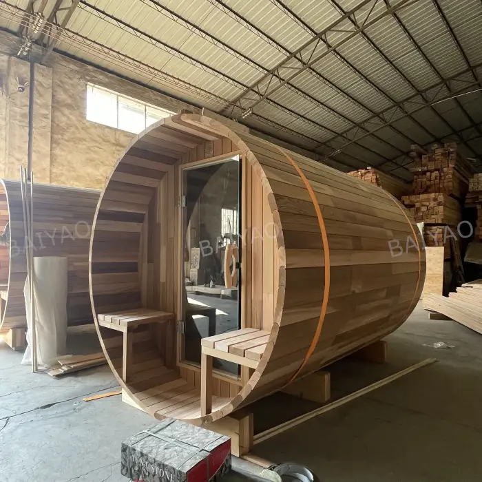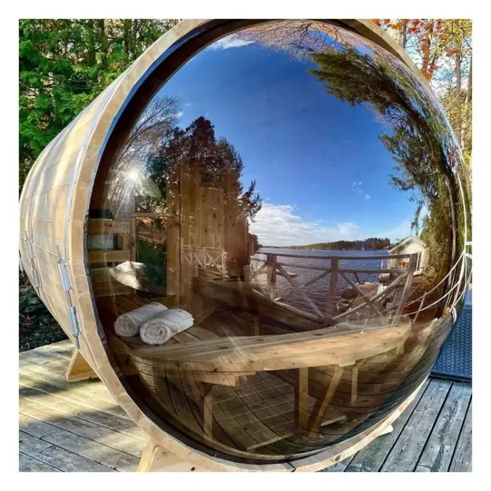 The Cedar Barrel Sauna is designed to comfortably accommodate 4 to 6 people.