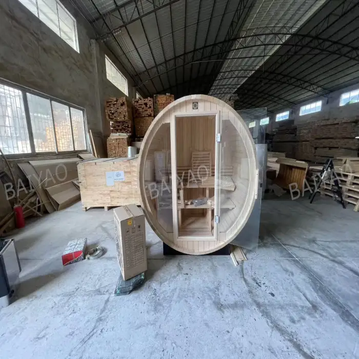 The sauna is equipped with an infrared carbon heater, which provides efficient heating for a comfortable sauna experience.