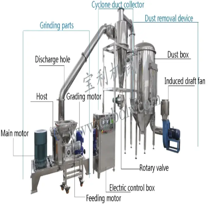 The pulverizer can produce fine powder sizes ranging from 80 to 320 mesh.