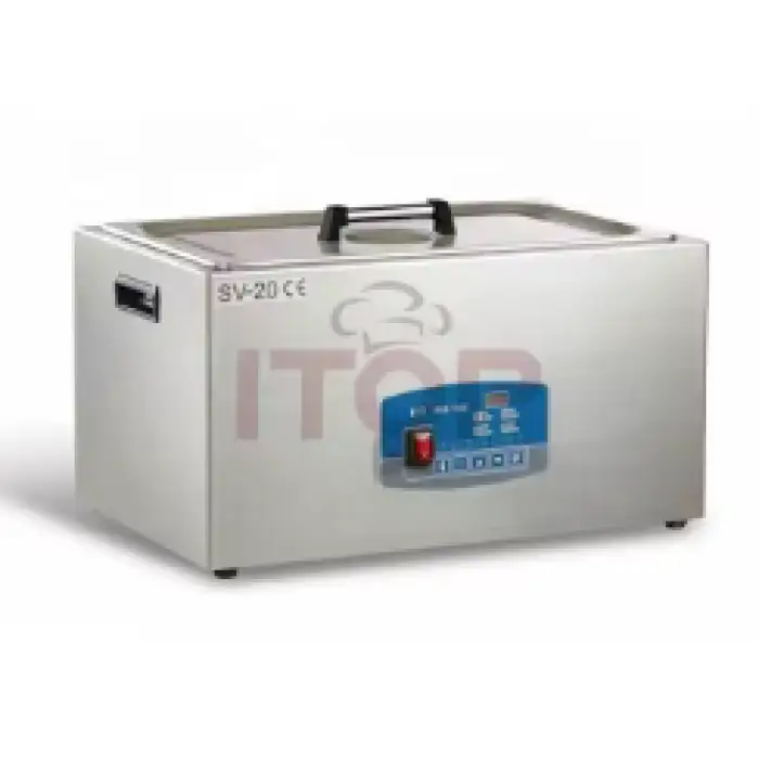 The SV-20 has a large capacity of 20 liters, making it suitable for bulk cooking.