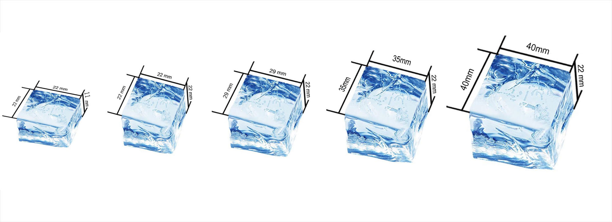 The standard ice cube size is 22mm x 22mm x 22mm, but it can be customized.