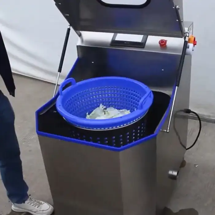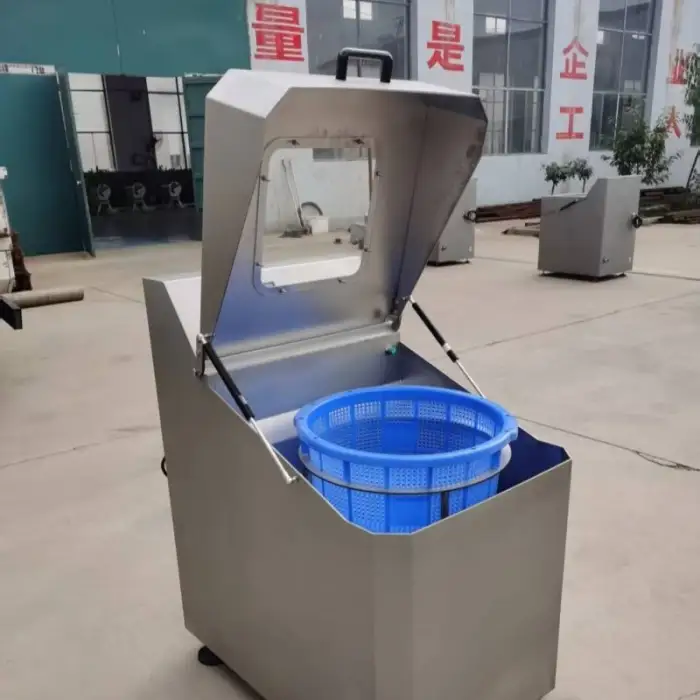 The machine offers high efficiency, adjustable speed, and the ability to handle large volumes of produce quickly, making it superior to traditional drying methods.