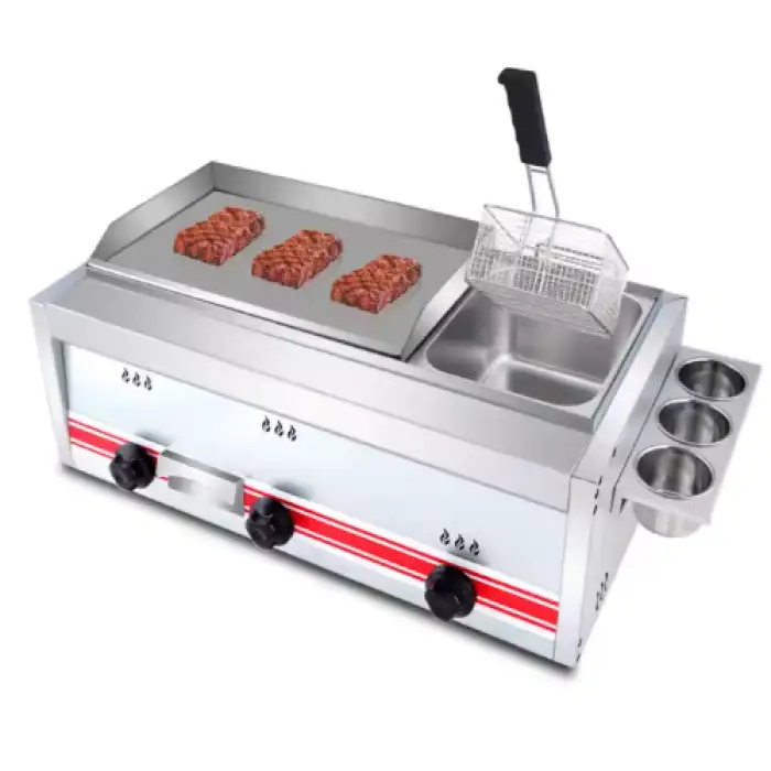This Commercial Gas Griddle with Gas Fryer operates using gas as its power source.