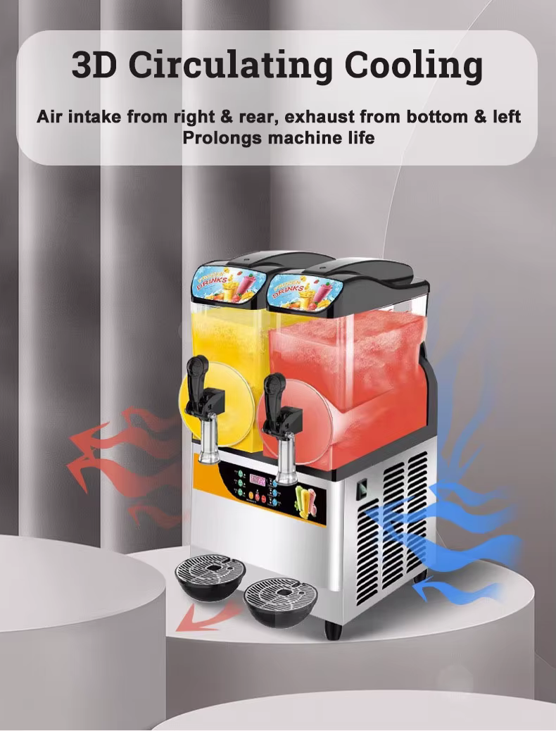 The slushie machine operates at a voltage of 220V-240V and 50HZ, but it can be customized if needed.