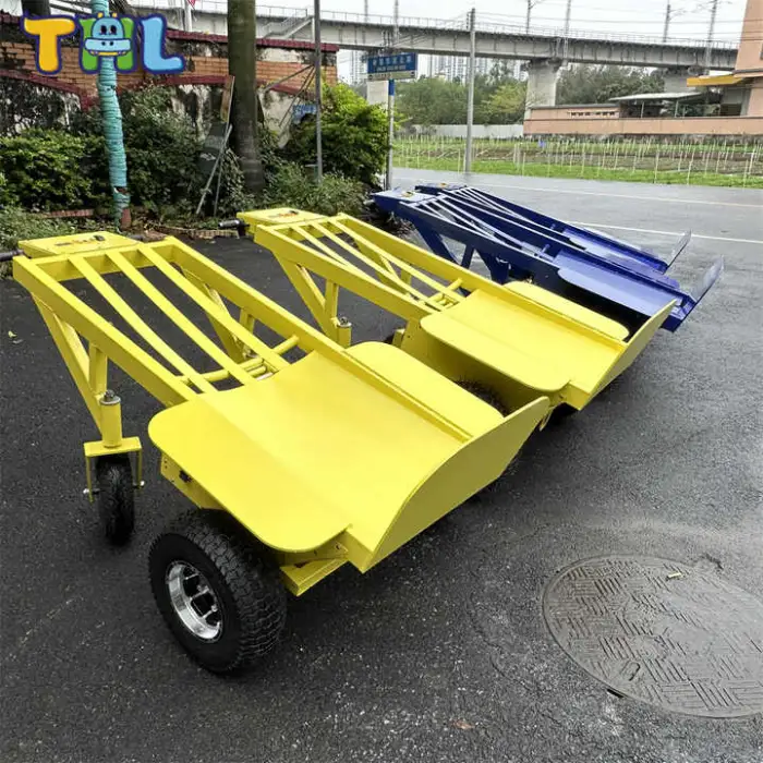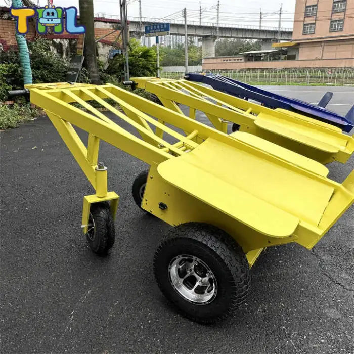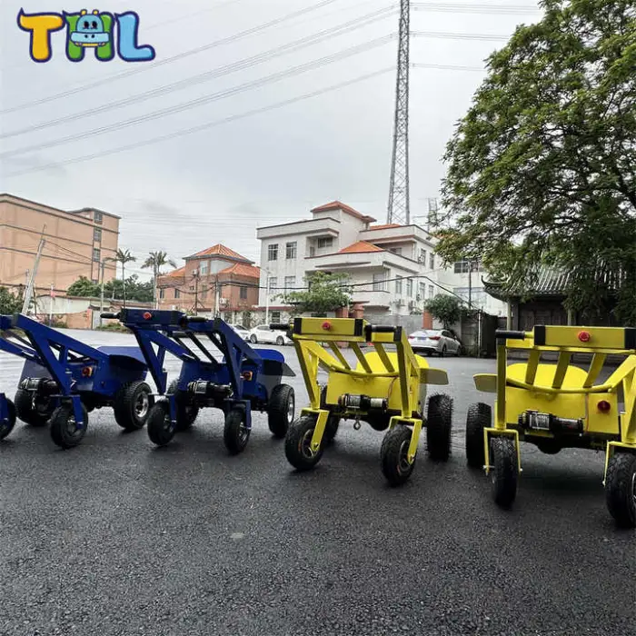 The electric cart is designed to handle heavy loads, specifically tailored for transporting inflatable slides, but the exact weight capacity can vary based on the specific model and usage.