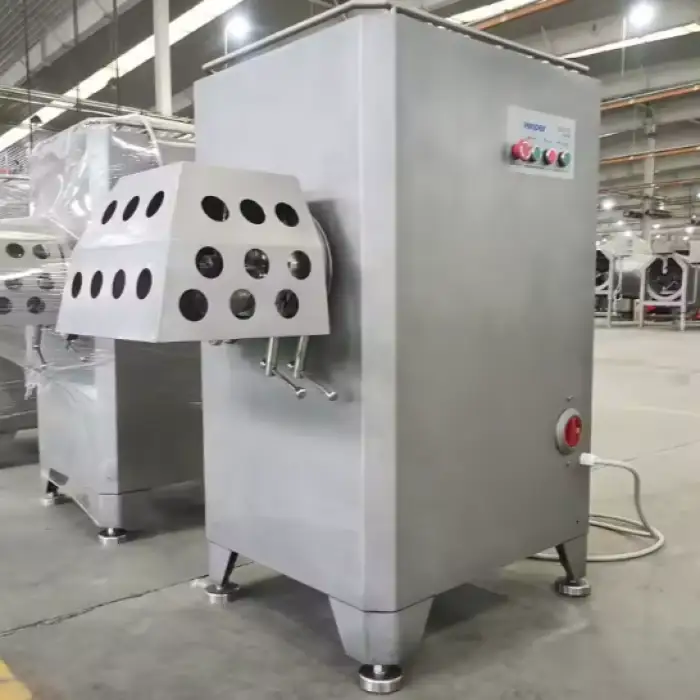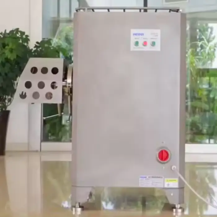 This machine can grind various types of meat, including frozen and fresh pork, chicken, and prawns.