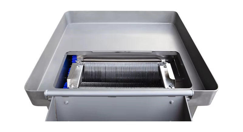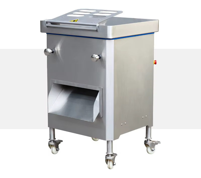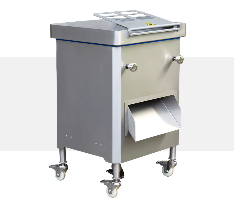 The machine can handle up to 300 kg of meat per hour, making it ideal for high-volume slicing and shredding.