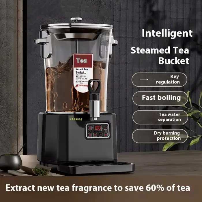 The tea bucket uses a steam heating method, which ensures quick and efficient heating of the water.