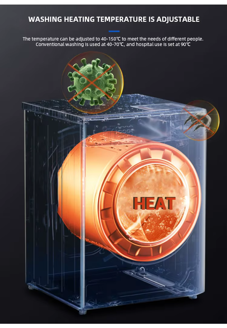 The Commercial Laundry Washer and Dryer Machine uses steam heat for effective cleaning.