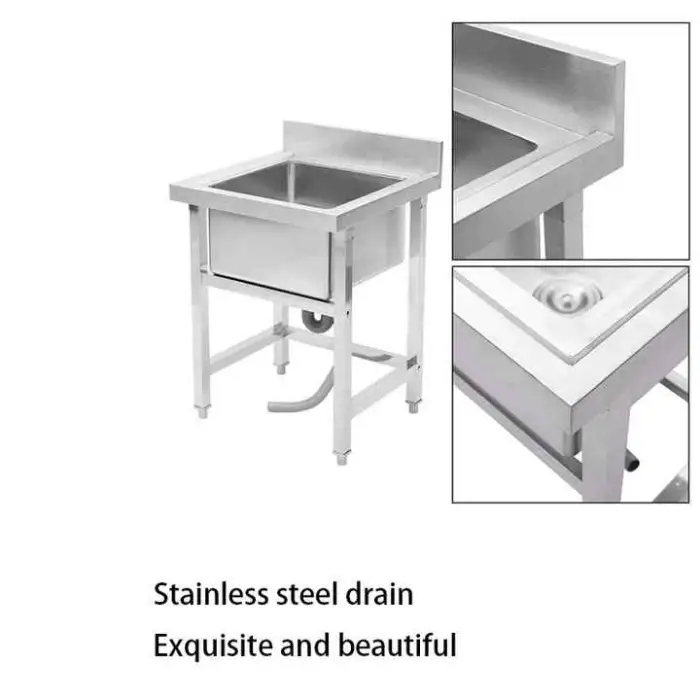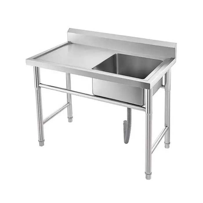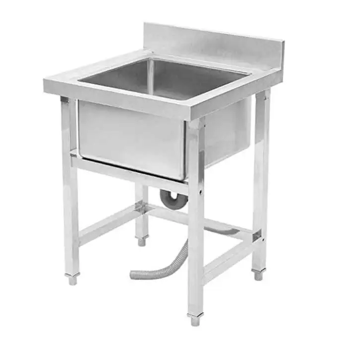 The sink is ideal for commercial kitchens, hotels, food preparation areas, and catering services.