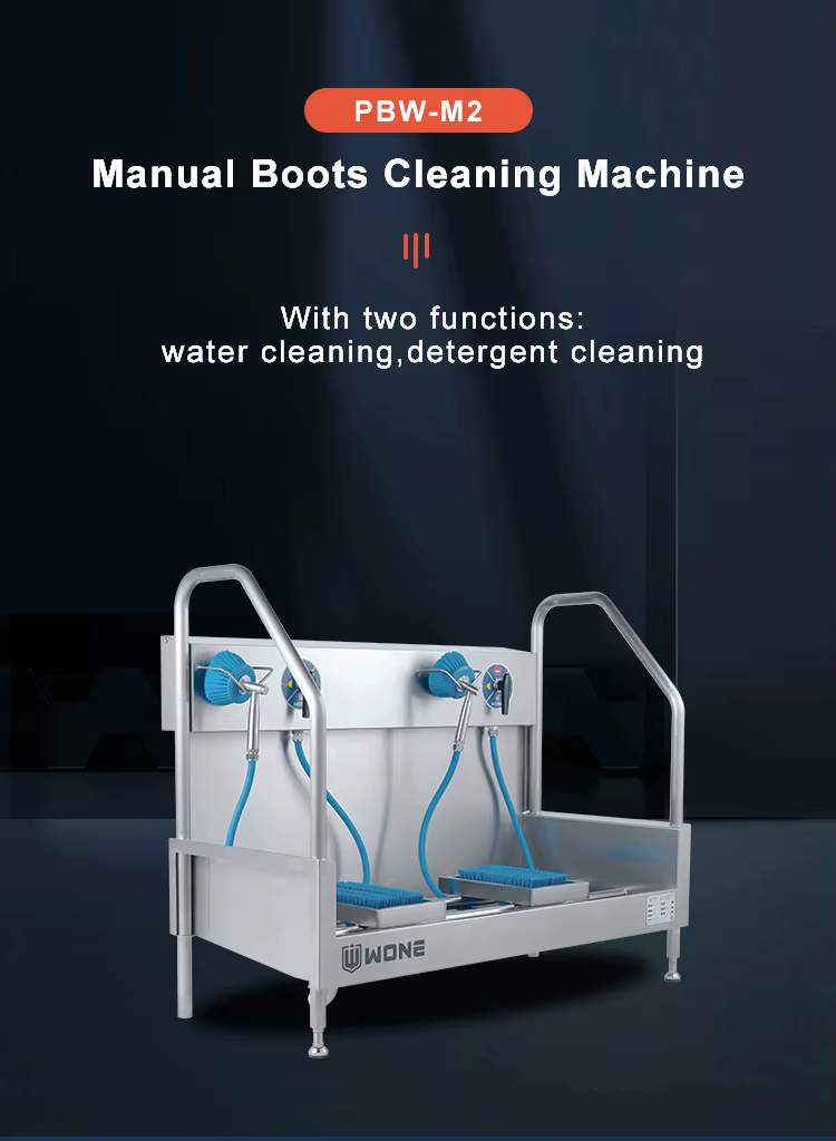 The machine is operated manually; simply place the boot in the designated area and use the cleaning mechanism to wash the soles and uppers.