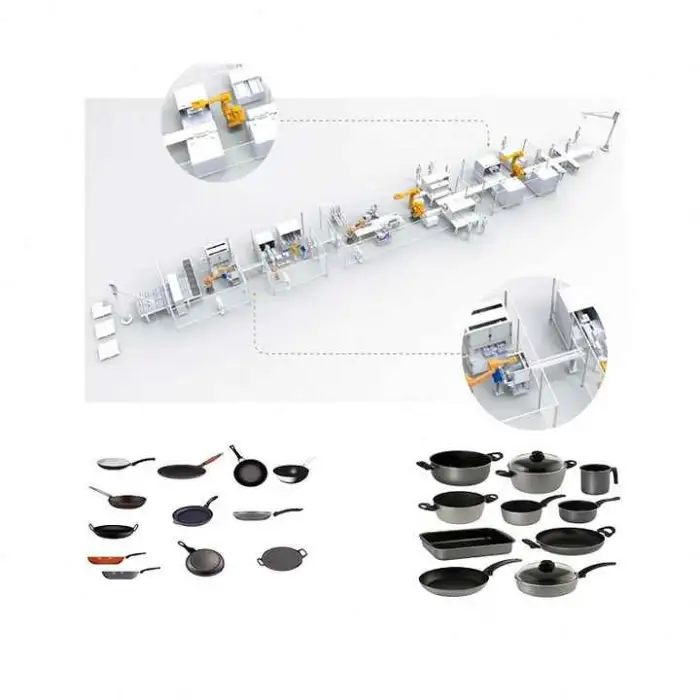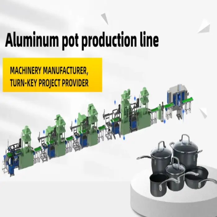 This production line is designed for manufacturing stainless steel cookware such as pots and pans, as well as other metal kitchenware and utensils.