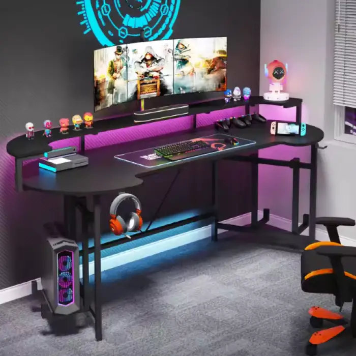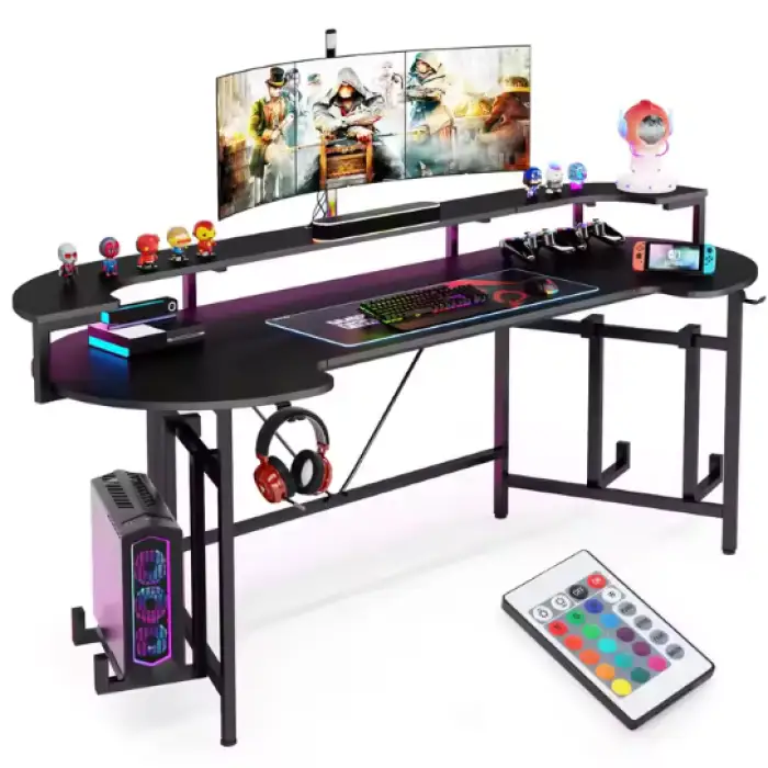 The desk is built to support a substantial weight, making it suitable for heavy gaming equipment and multiple monitors. Specific weight limits can be found in the product specifications.