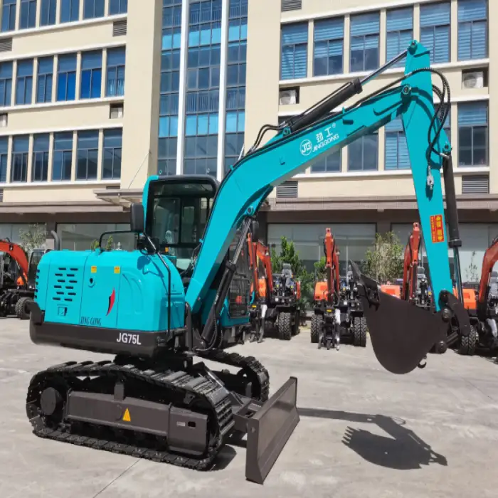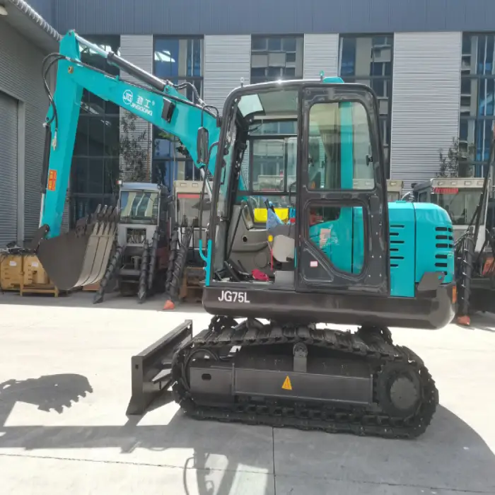 This excavator is suitable for site preparation, excavating foundations, landscaping, grading, digging trenches, and material handling.