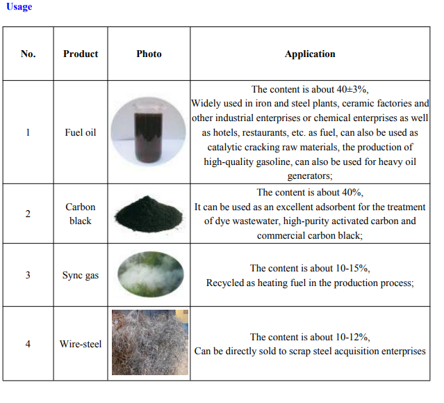 The oil products can be used as fuel base oil, rubber additives, and other valuable resources, contributing to the production of clean energy.
