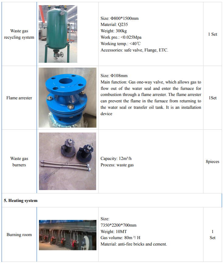 The machine employs a residual gas circulation heating method which reduces energy consumption by reusing combustible gases produced during the pyrolysis process.