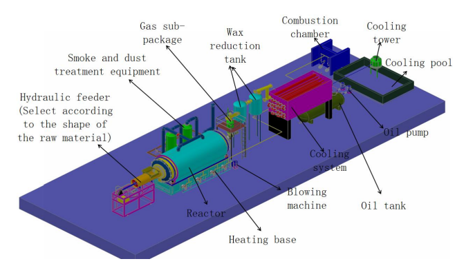 The machine can handle a variety of waste materials including waste tires, waste plastics, oil sludge, and household waste.