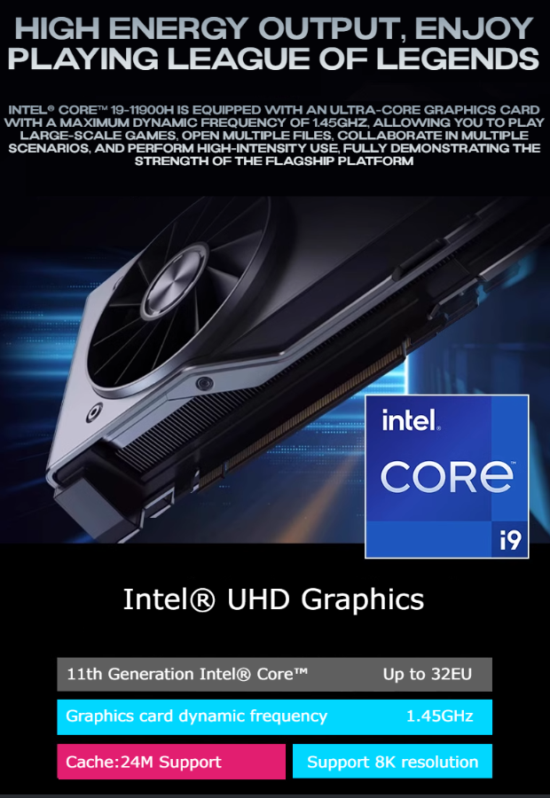 It is equipped with up to an Intel Core i9-11900H CPU, providing smooth and efficient multitasking capabilities.