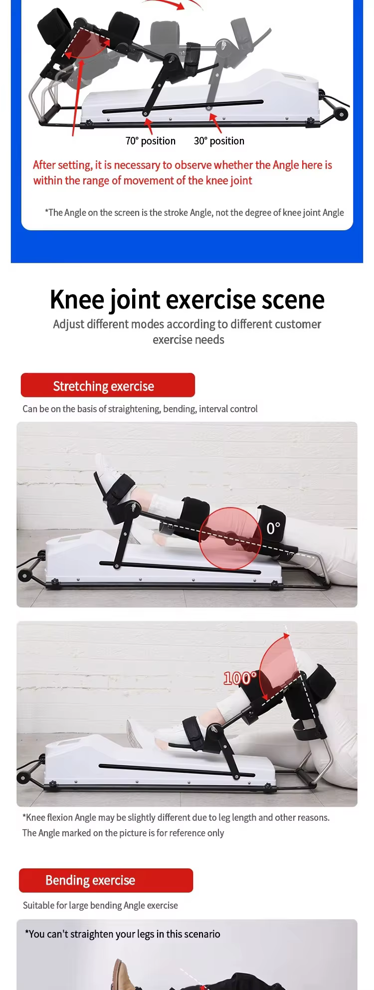This device is ideal for patients recovering from knee surgery, individuals undergoing physiotherapy in hospitals, as well as those needing ongoing rehabilitation at home or in long-term care facilities.