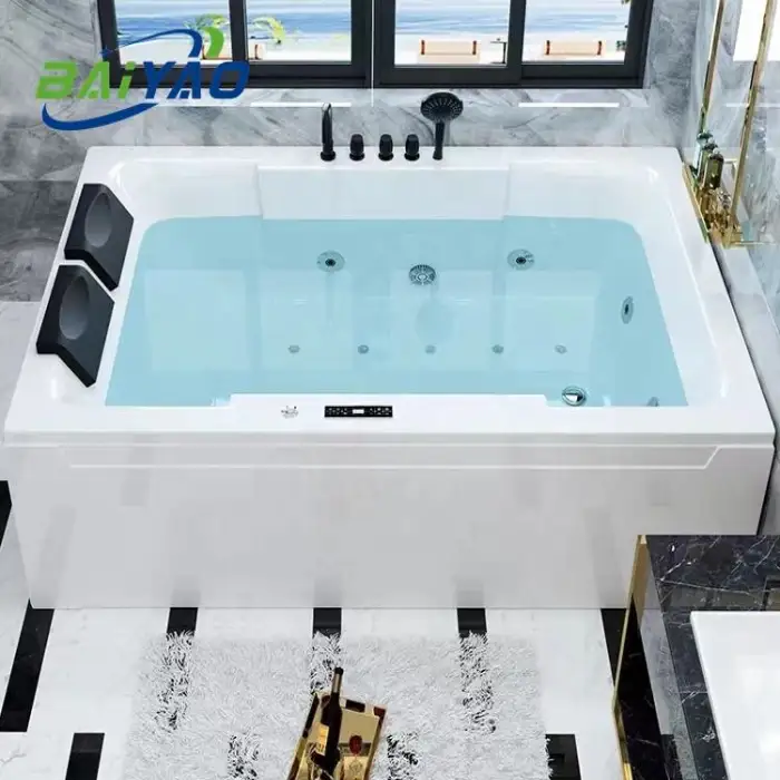 Custom Modern Square Massage Bathtub White Acrylic Freestanding Whirlpool Walk in Tub Shower Combo Hot Tub