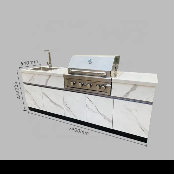The BBQ island is certified with ISO9001 and CE standards, ensuring it meets quality and safety requirements.