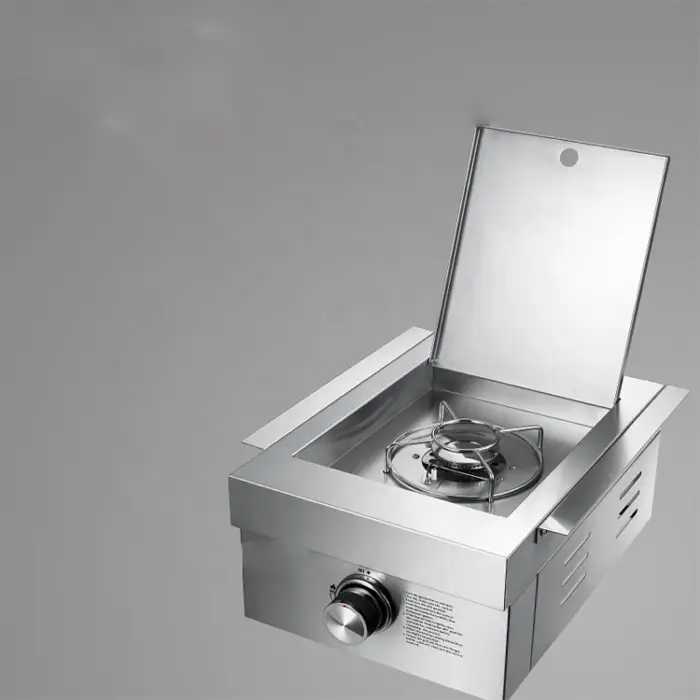 The BBQ island features stainless steel tube burners for efficient and durable cooking.