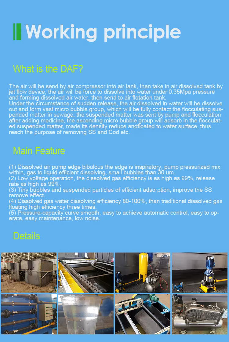 By effectively treating wastewater and ensuring the separation of harmful substances, the DAF machine helps industries comply with environmental regulations regarding water disposal.