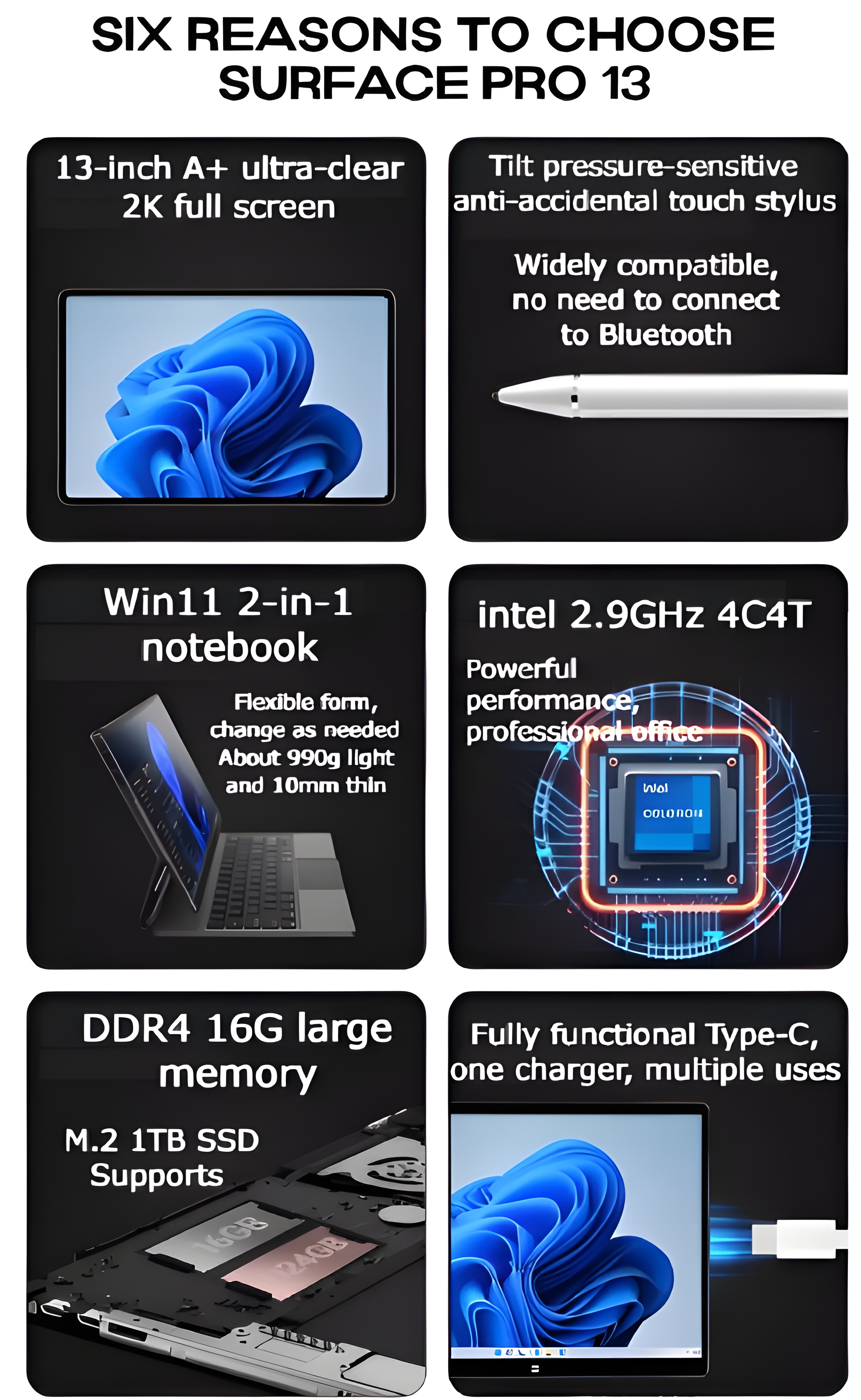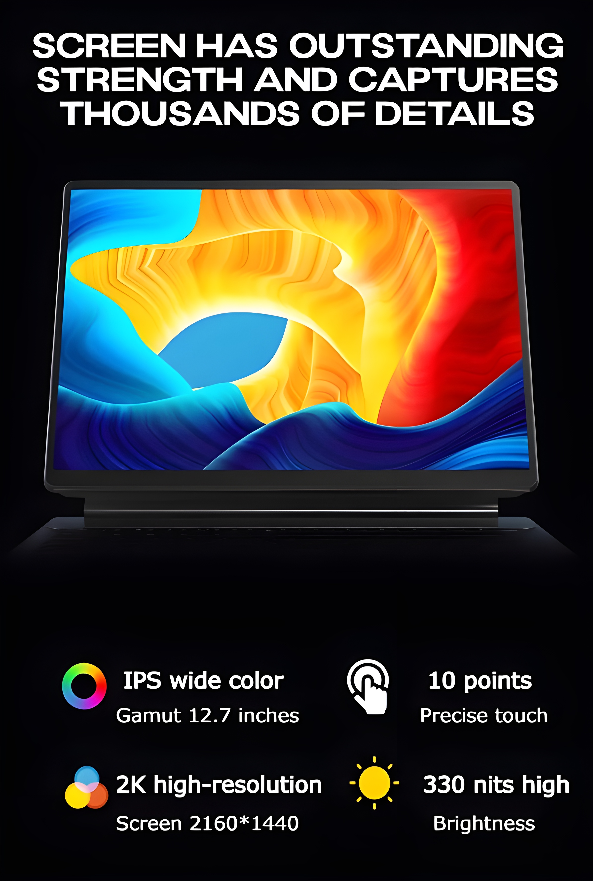 The DERE Surface Pro 13 features a 16-inch ultra-clear touchscreen with a resolution of 2560x1600 pixels.