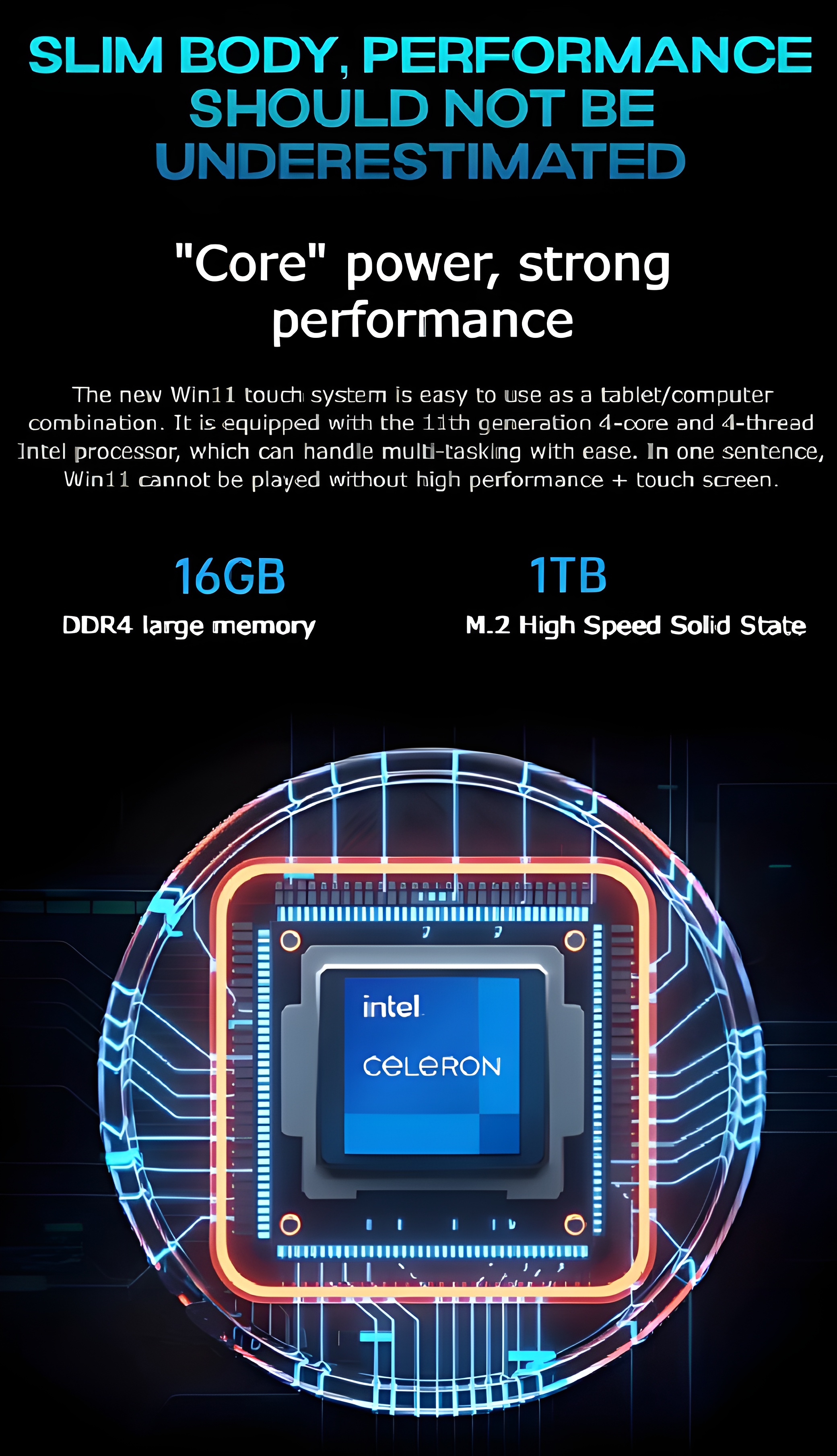 The laptop is powered by the Intel Celeron N5105 processor, which provides reliable performance for multitasking and productivity.