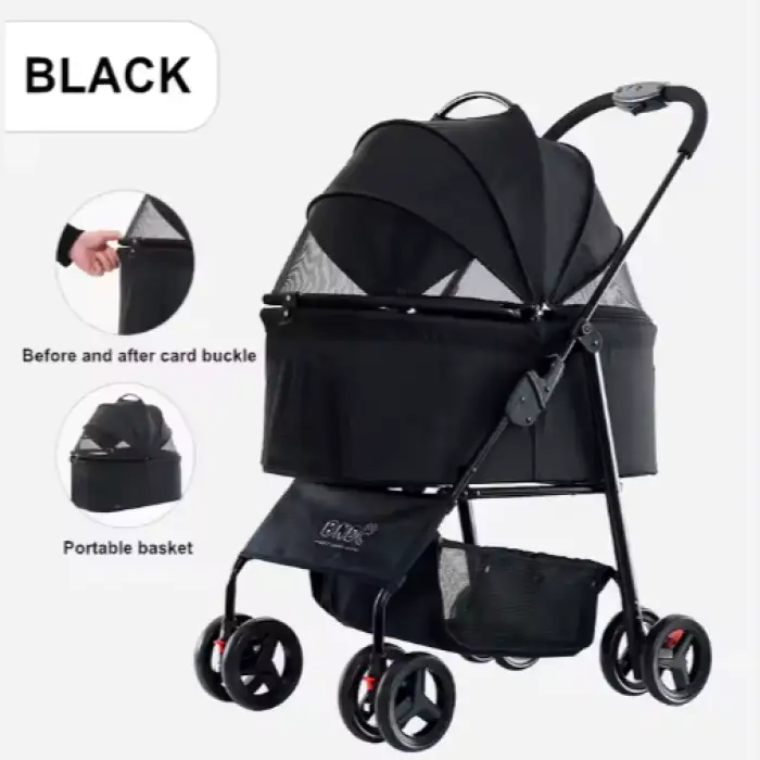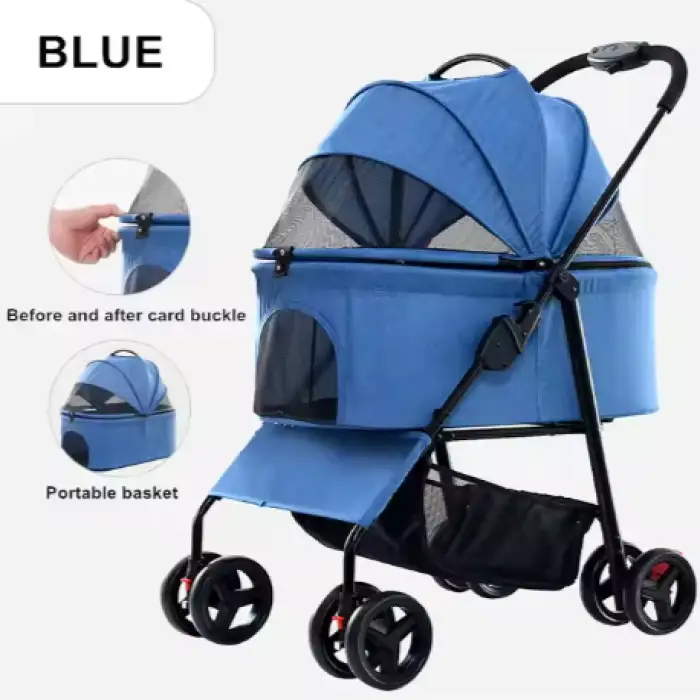 The pet stroller is suitable for dogs, cats, and other small animals, providing a comfortable space for them during travel.