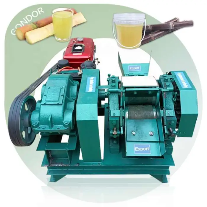 This juicer is powered by a diesel engine, providing efficient and reliable performance for extracting juice from sugarcane.