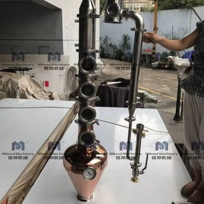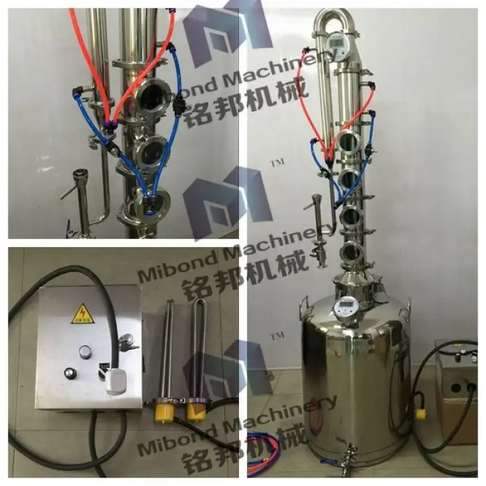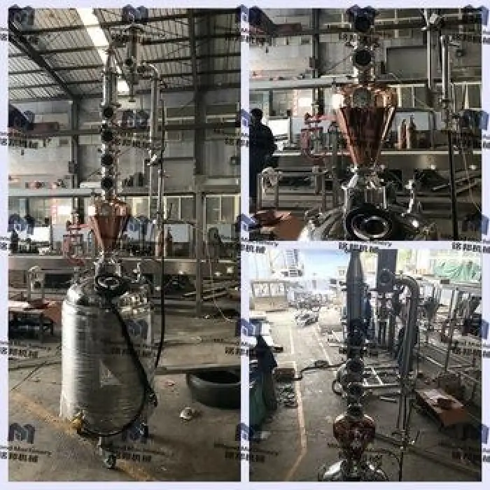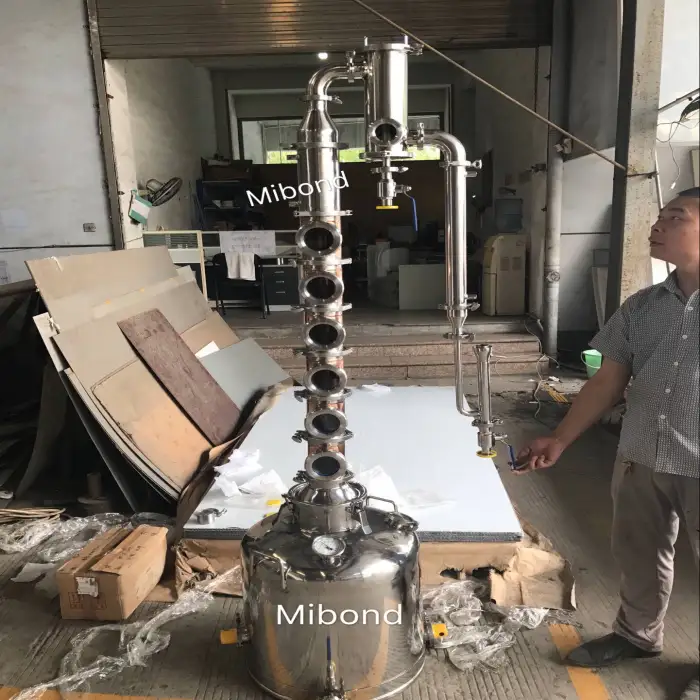 The distillation equipment has a capacity of 200 liters, with custom options available.