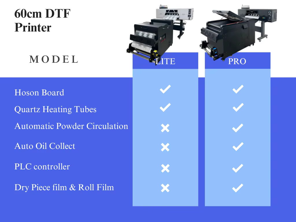 The DTF 60cm 2 Head DTF Printing Machine can print at speeds of 11-14 sqm/h.